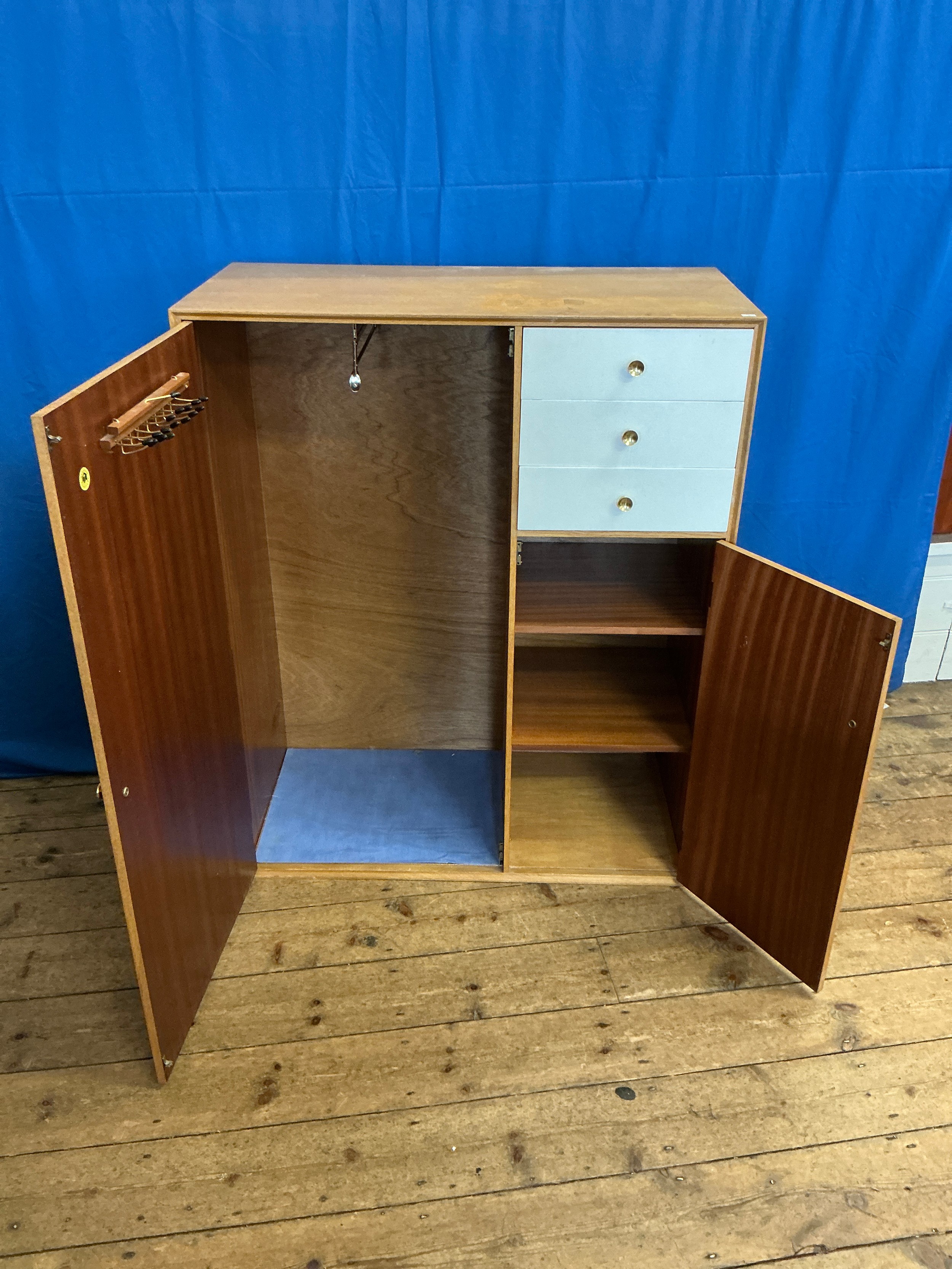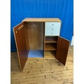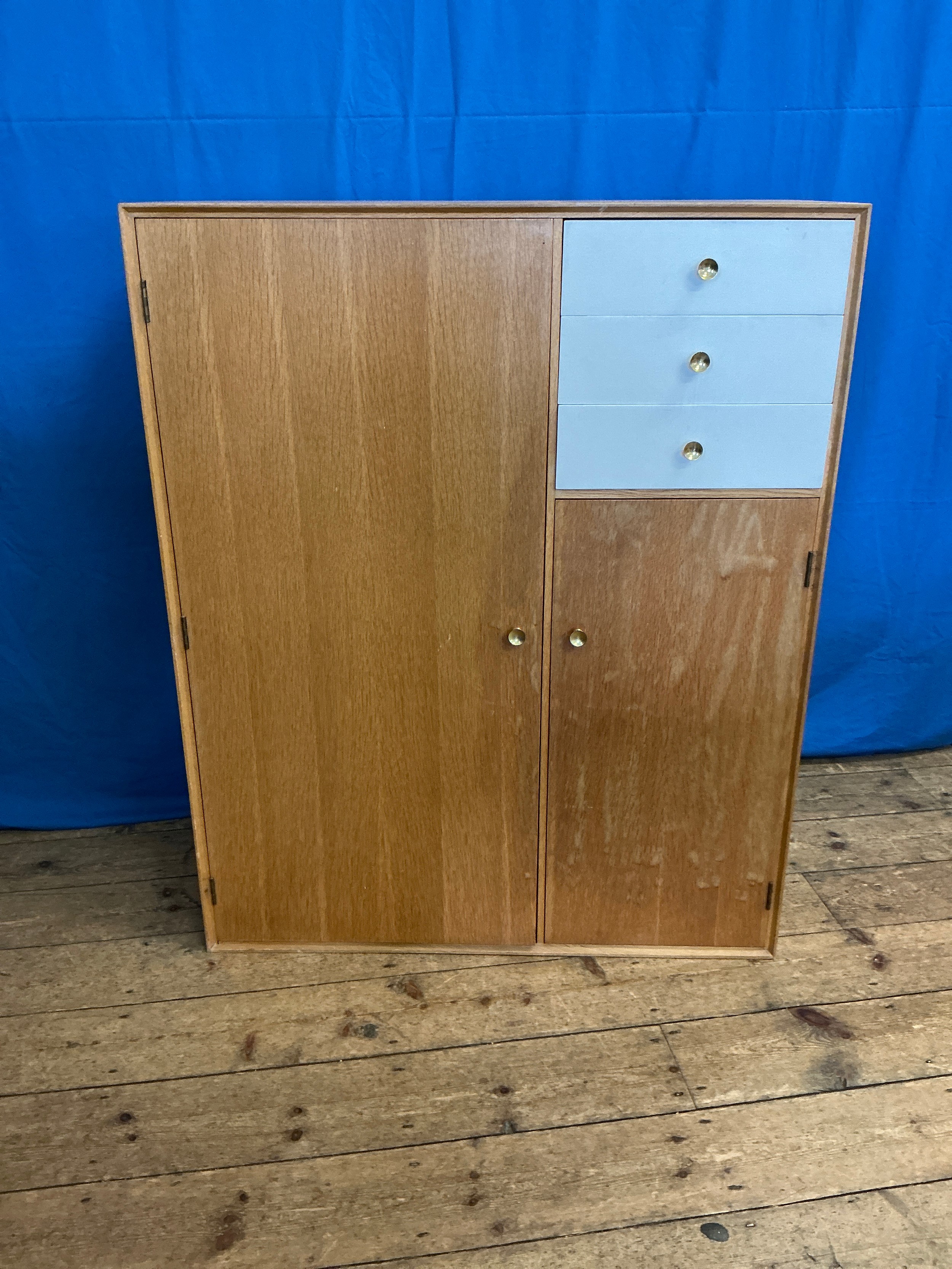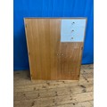 A Child's Three Drawers Oak veneered & White painted Chest fitted with Three Drawers & Two Cupboards by "Meredew" Furniture. Measuring: 94cms across x 46cms deep x 106cms high.