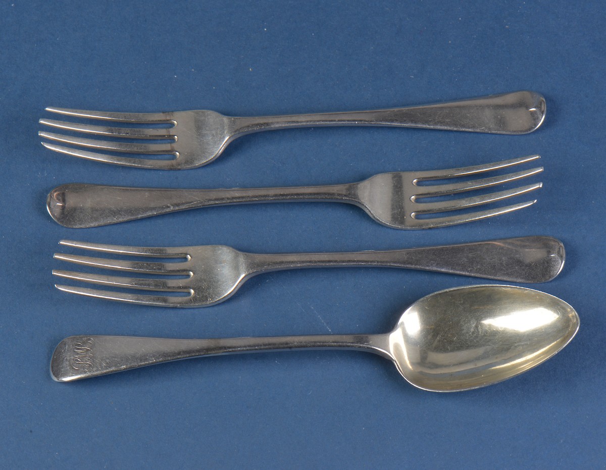 Three Georgian Silver Old English Pattern Desert Forks & a s...