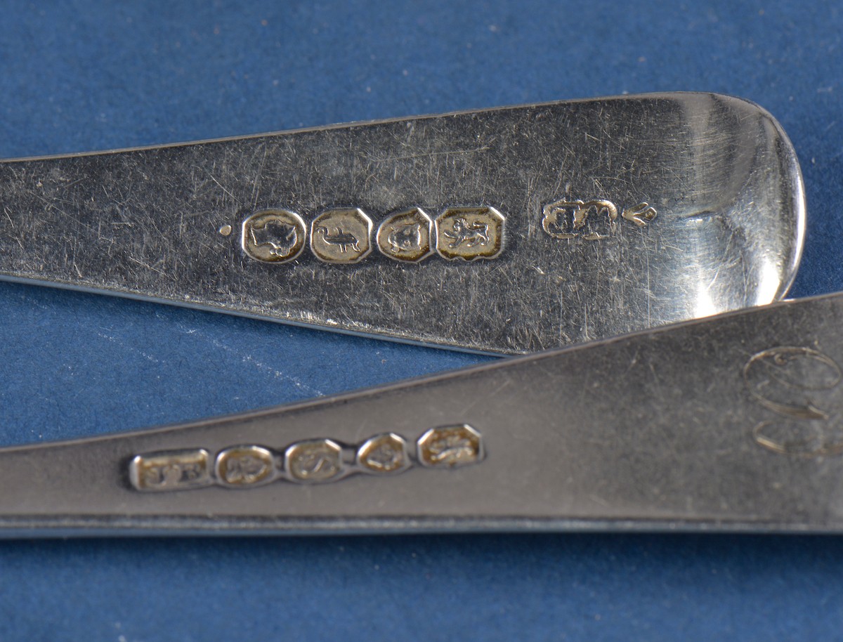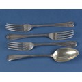 Three Georgian Silver Old English Pattern Desert Forks & a similar Tea Spoon. Weighing: 146 grams.