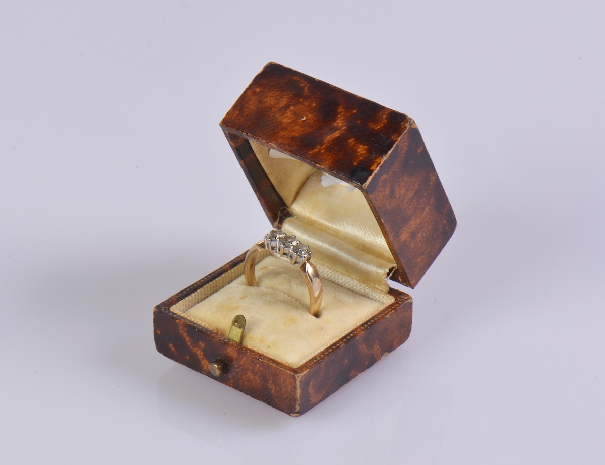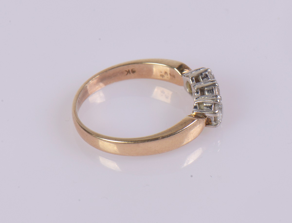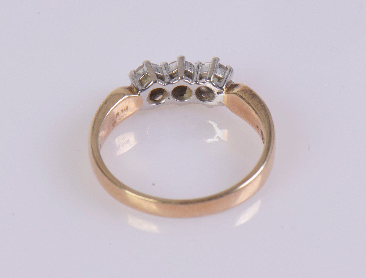 A 9ct gold trilogy ring set with three round brilliant cut d...