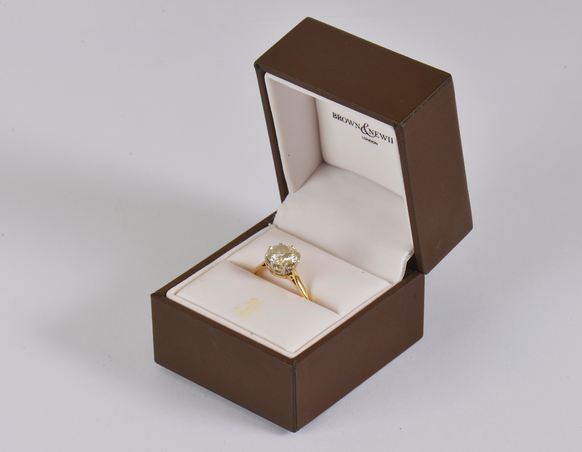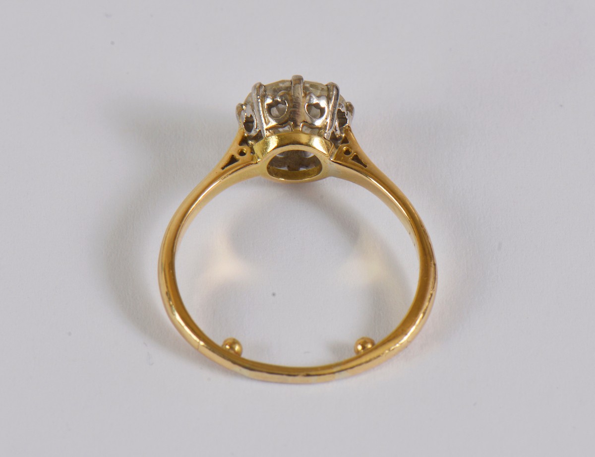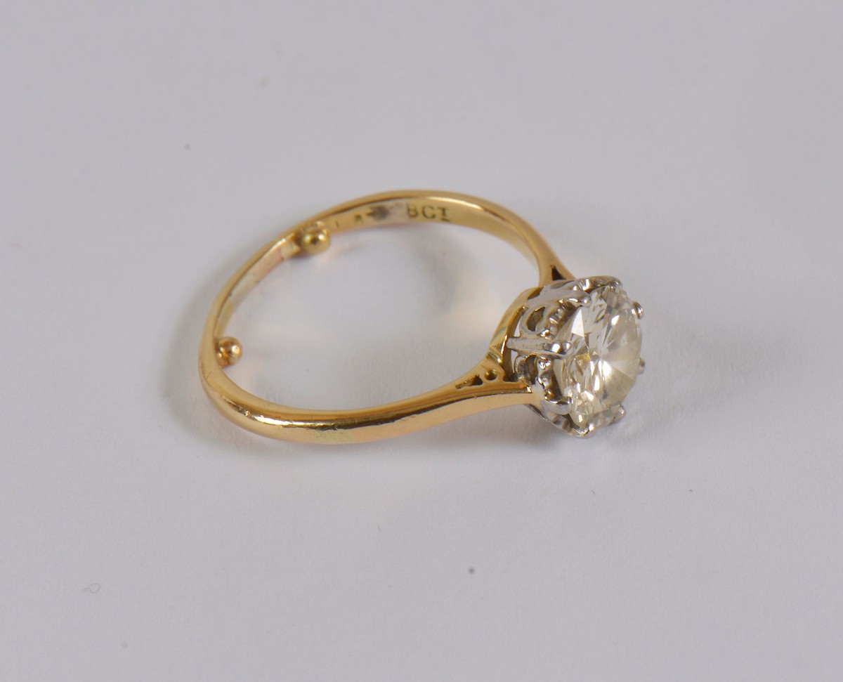 A ladies solitaire diamond ring, set in 18ct gold and featuring a diamond of approximately 1.8ct. Ring size M. Total weight 3.2g.