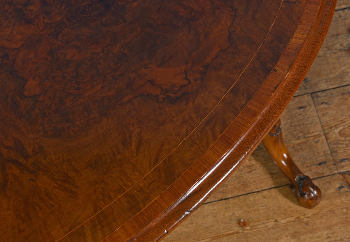 A Victorian Walnut Oval Topped Loo Table with inlaid & Bandi...