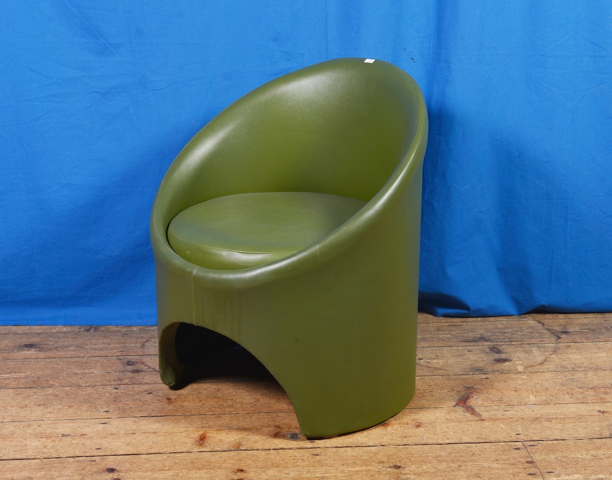 A 1960s "Evans of High Wycombe" Green Covered Drum Chair.