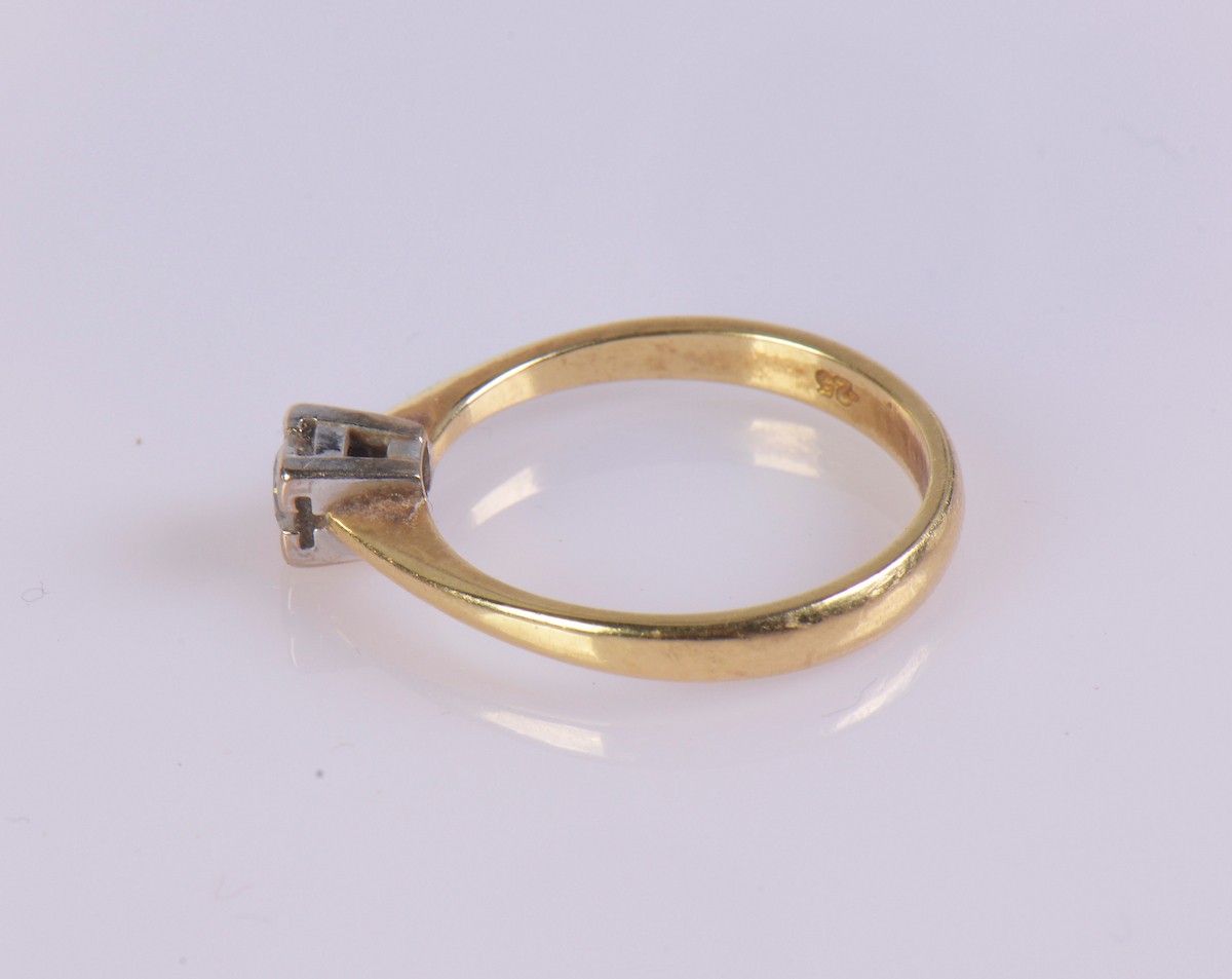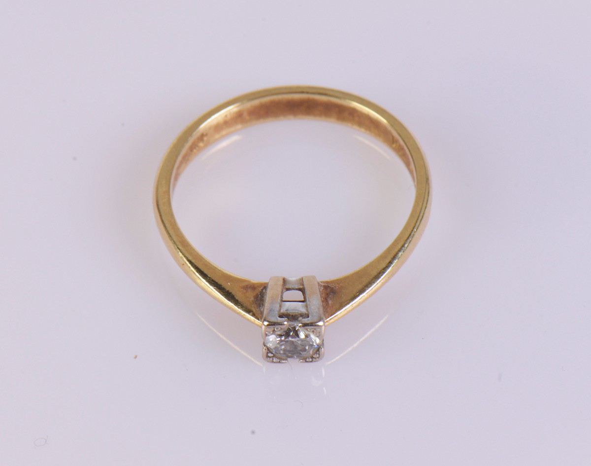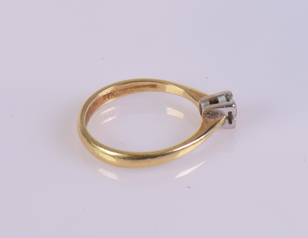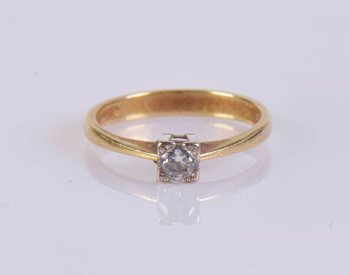 An 18ct gold solitaire diamond ring, featuring a single diamond of approximately 0.25 ct. Weight approximately 3.5 g, ring size Q.