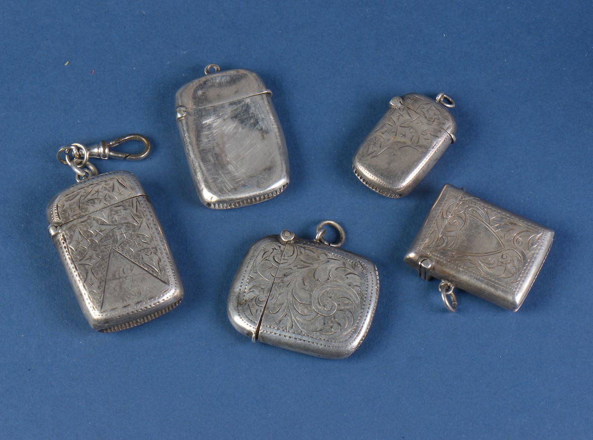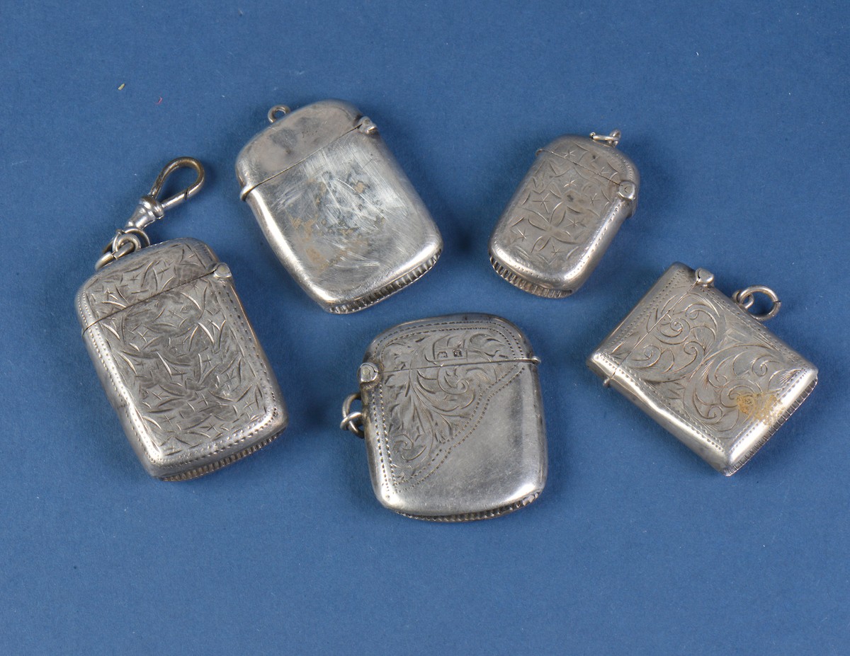 Five Various Silver Vesta Cases with engraved decoration. We...