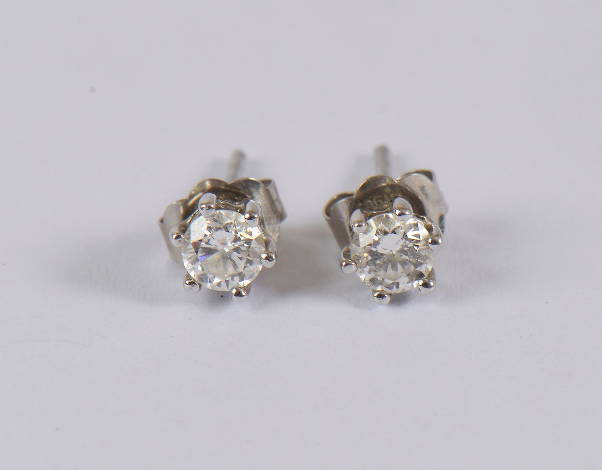 A pair of elegant diamond earrings, each set with a diamond ...