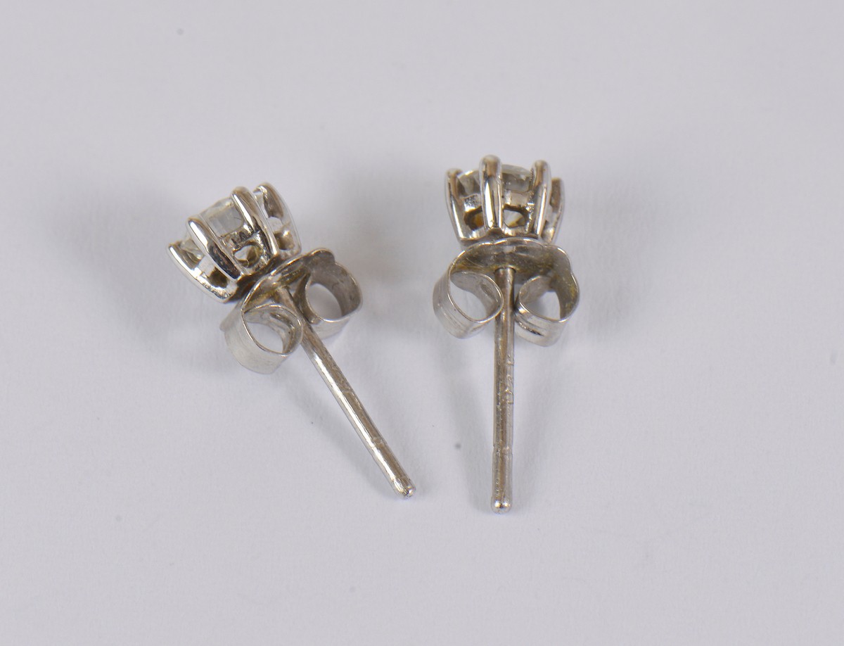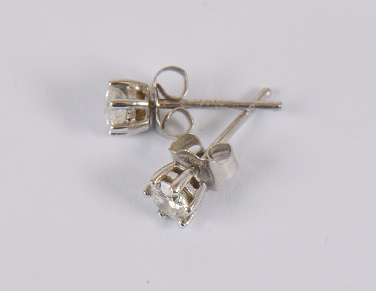 A pair of elegant diamond earrings, each set with a diamond of approximately 0.20ct. Fitted with earring backs marked PT900.