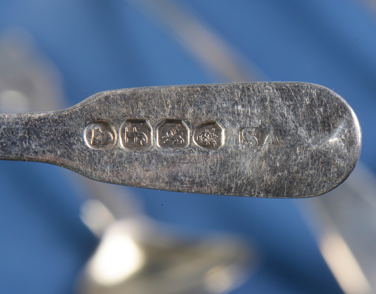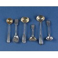 A Collection of Georgian & Victorian Silver Mustard & Salt Spoons including Birmingham Stump's & Long John's. Weighing: 61 grams.