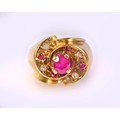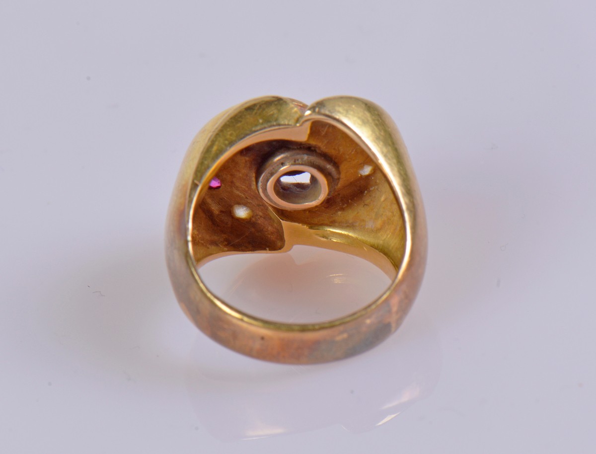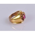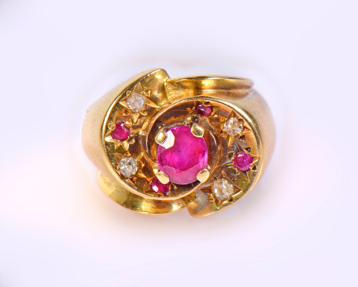 A RARE 18ct gold ring set with diamonds and rubies, (Possibl...
