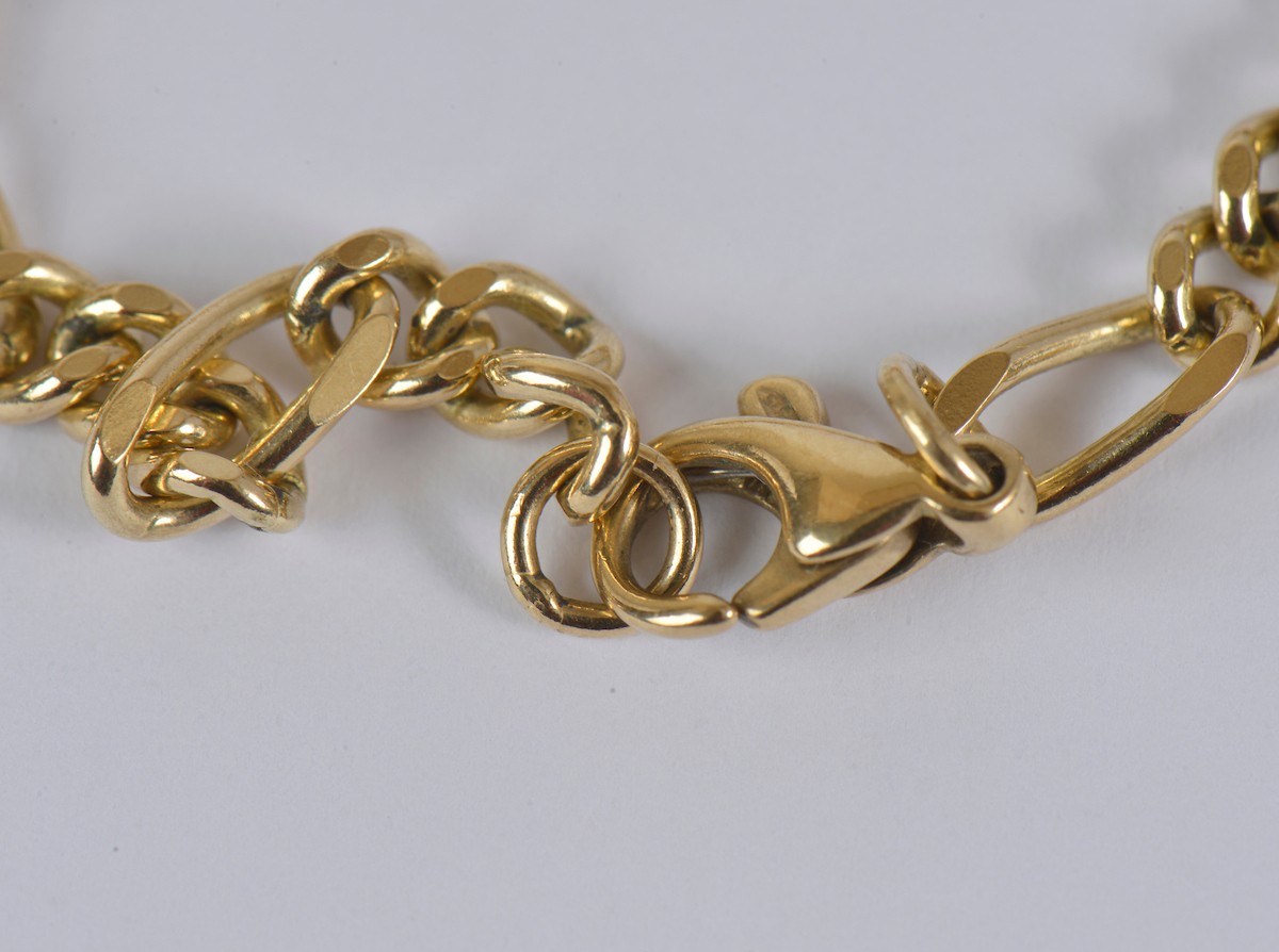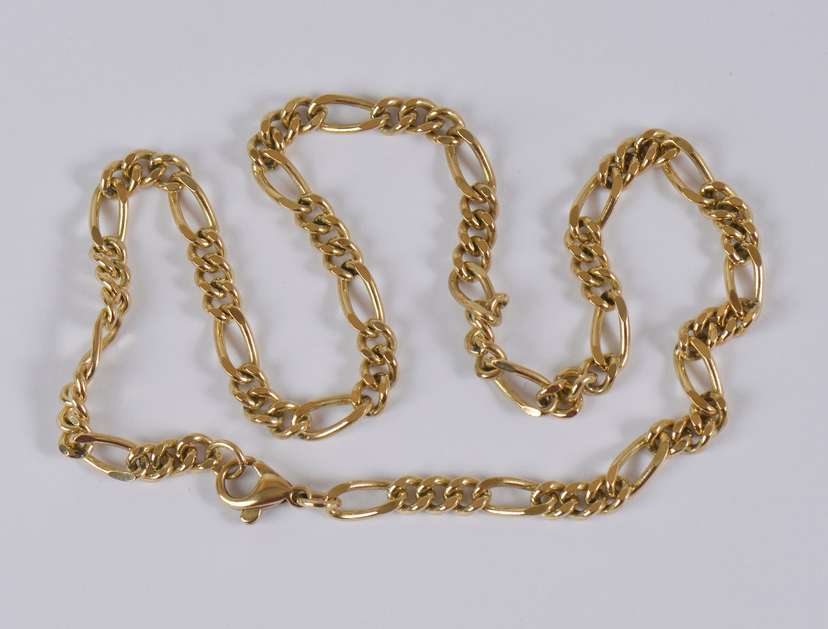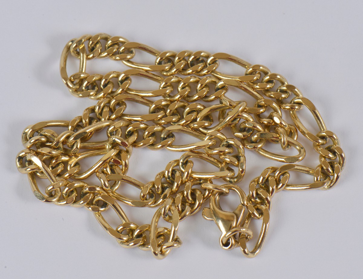 A 9ct gold Figaro chain necklace, designed in a choker style. Length 53cm. Total weight 15.5g.