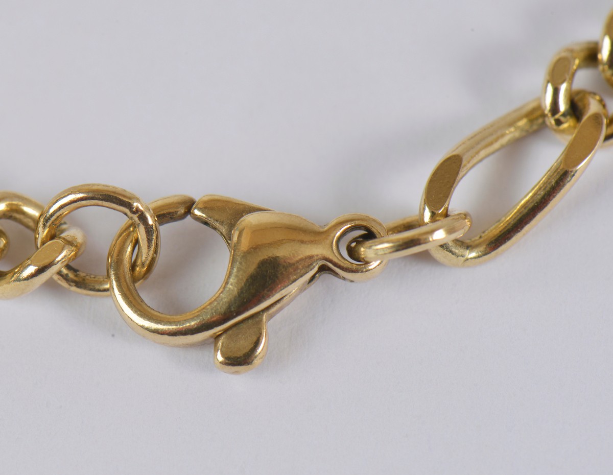 A 9ct gold Figaro chain necklace, designed in a choker style...
